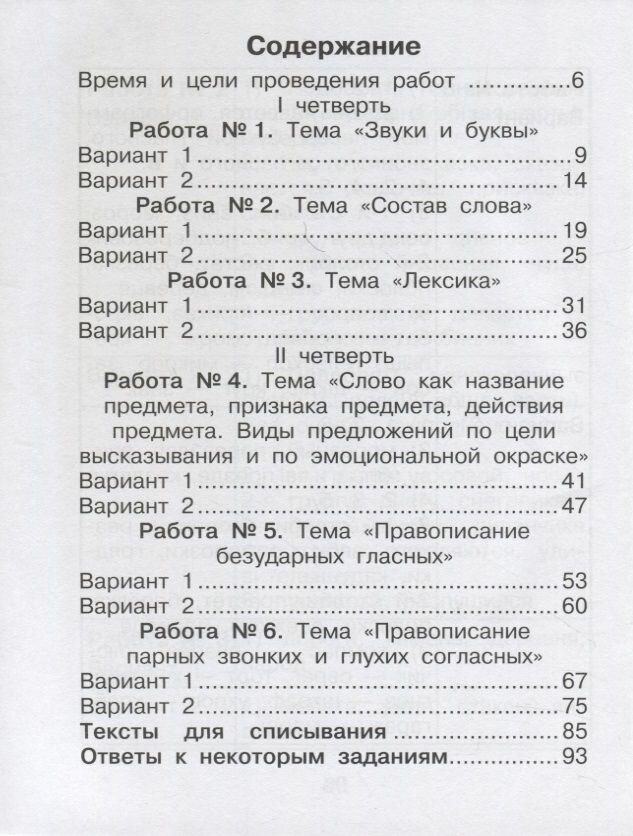 Каждая работа представлена двумя вариантами. При сохранении типологии заданий второй вариант строится на более сложном языковом материале. Кроме того, в каждый вариант работы включено несколько заданий повышенной сложности.