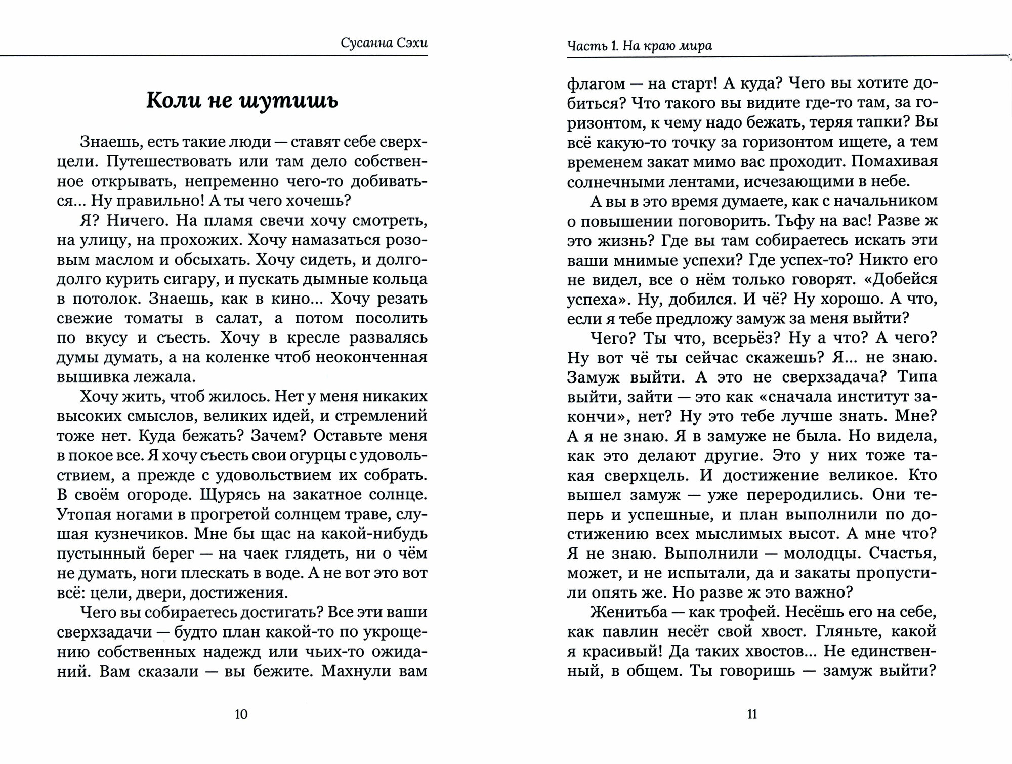 Коротенькие и, на первый взгляд, наивные, истории Сусанны Сэхи наполнены куда более глубоким смыслом, чем это кажется. Герои размышляют, переживают и радуются. У них не просто свой мир, наполненный счастьем, страхом, болью. Оживая на страницах книги, они живут своей жизнью, напоминая нам о нашей, прося не забывать о простом, человеческом. И в каждом из них мы можем увидеть себя.