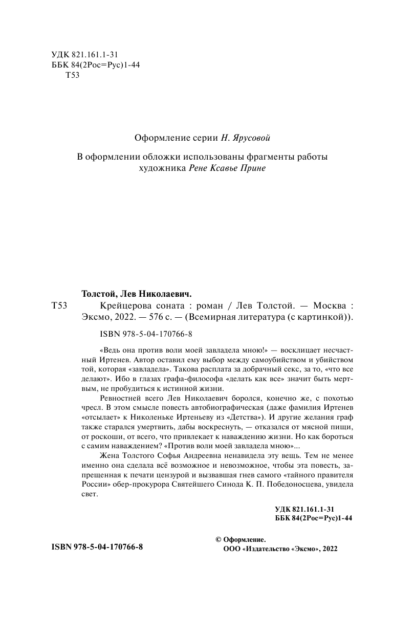 Книга: Крейцерова соната (Толстой Лев Николаевич); ООО "Издательство "Эксмо", 2022