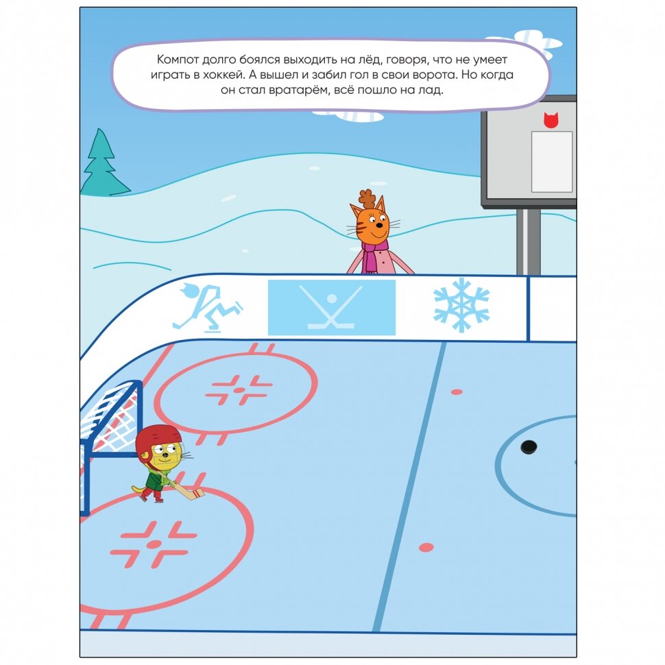 Миу-миу-миу! А ваш ребенок любит мультсериал «Три кота»? Тогда ему обязательно понравится эта книжка с наклейками, рассказывающая о разных видах спорта.