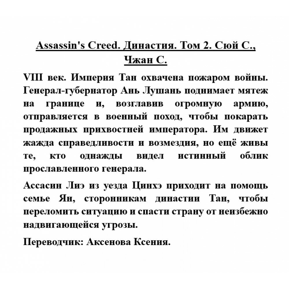 Assassins Creed Династия Том 2 (Сюй Сяньчжэ, Чжан Сяо); ИЗДАТЕЛЬСТВО "АСТ", 2022