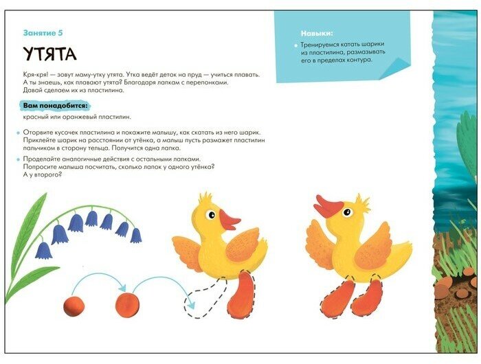 Прекрасное пособие для лепки с малышами, наш сын в 2,5 года просто обожает заниматься с пластилином, только у меня нет столько фантазии, придумывать ему каждый раз задания, такие пособия спасают. Иллюстрации очень красивые, в стиле аппликаций из пластилина, очень вдохновляют на творчество. Задания в игровой форме с участием, конечно, одно из гномов Пончика