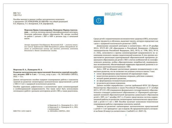 КРО Развитие математических представлений Конспекты занятий для работы с детьми с ЗПР 4-5 лет (Морозова Ирина Александровна, Пушкарева Марина Анатольевна (соавтор)); МОЗАИКА kids, 2021