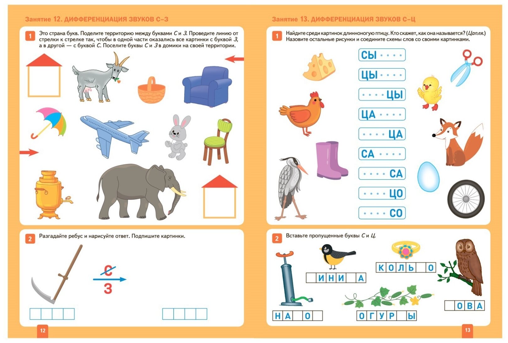 Выполняя задания, предложенные в тетради, дети закрепляют умение определять местоположение звука в слове, совместно с воспитателем правильно учатся его произносить, заменять один звук на другой, находить картинки с заданным звуком, производить звукобуквенный анализ, делить слова на слоги, обводить буквы по пунктирным линиям, дописывать и составлять слова, формируя первоначальные навыки чтения.