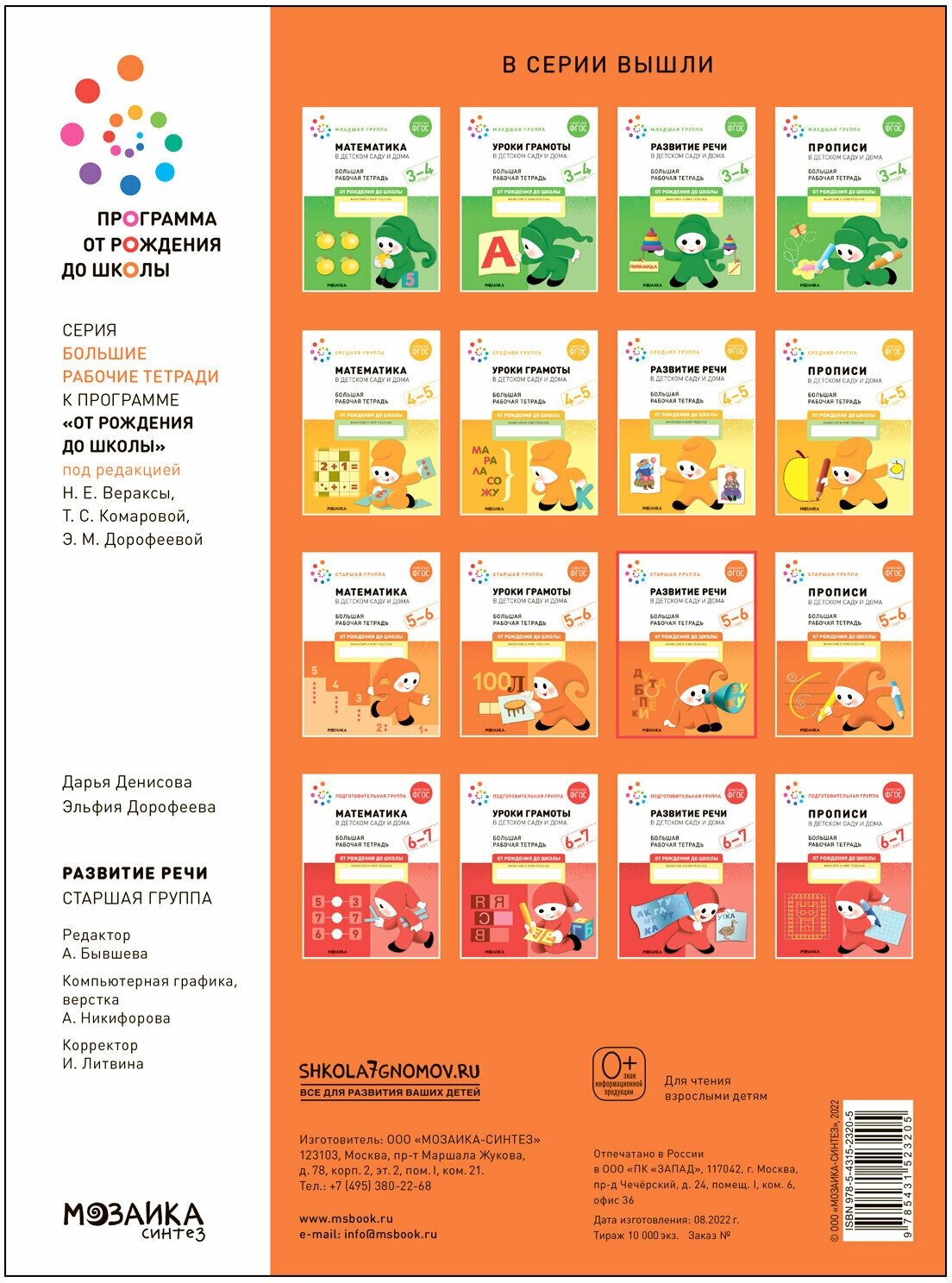 Развитие речи в детском саду и дома Большая рабочая тетрадь 5-6 лет (Э.М. Дорофеева, Дарья Денисова); МОЗАИКА kids, 2022