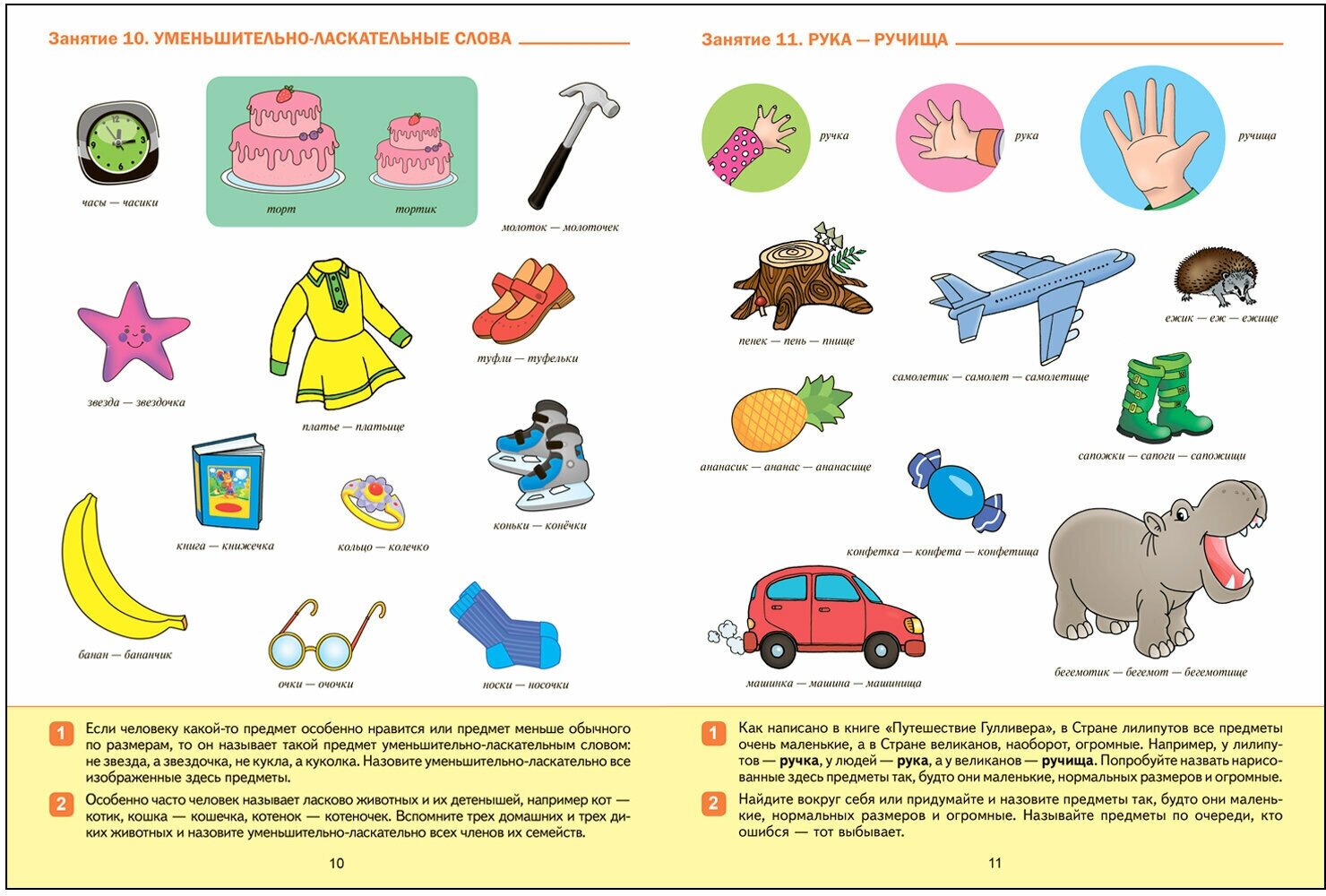 Выполняя задания, предложенные в тетради, дети учатся находить обобщающие слова, правильно употреблять существительные в родительном падеже множественного числа, группировать знакомые предметы и классифицировать их, овладевая словарным составом слова. Закрепляют способы образования существительных с суффиксами, придающие словам различные оттенки (уменьшительно-ласкательный, увеличения, уменьшения и др.), способы образования глаголов с приставками, подбирать антонимы к ним и прилагательным.