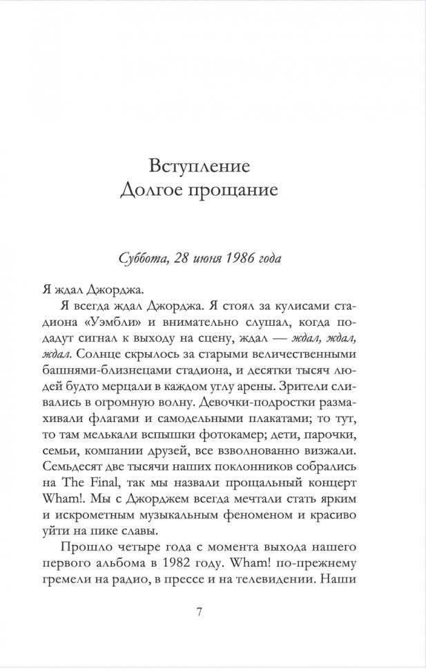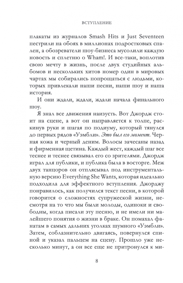 Замечательная биография, я не большая фанатка группы WHAM, но решила прочитать эту книгу, чтобы подробнее ознакомиться с группой, книга получилась просто нереальной, мне очень попалась в ней собраны все факты о группе, от и до, разные подробности совместной работы, от самого популярного сингла о том все как начиналось, в этой книги присутствовали даже давольно личные подробности,я осталась очень довольна книгой