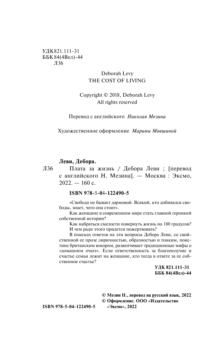 Книга: Плата за жизнь (Дебора Леви); Эксмо, Редакция 1, 2022