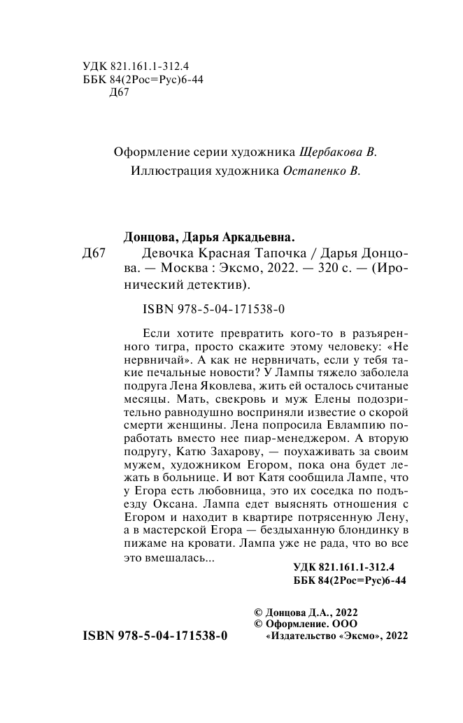 Книга: Девочка Красная Тапочка (Донцова Дарья Аркадьевна); ООО "Издательство "Эксмо", 2022