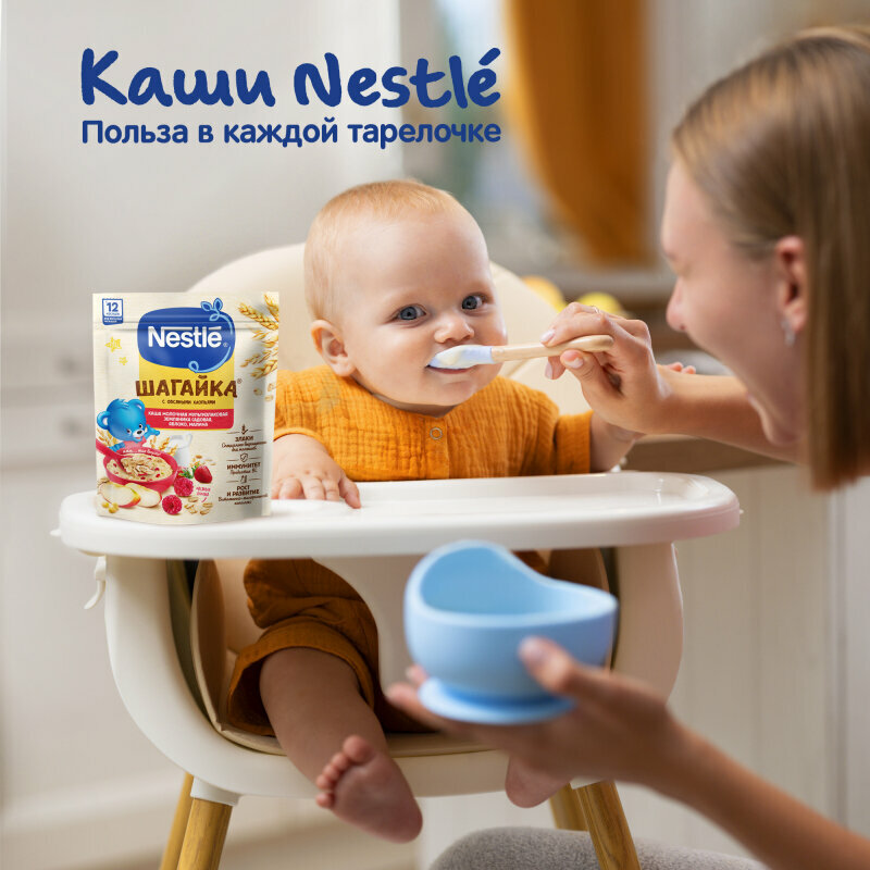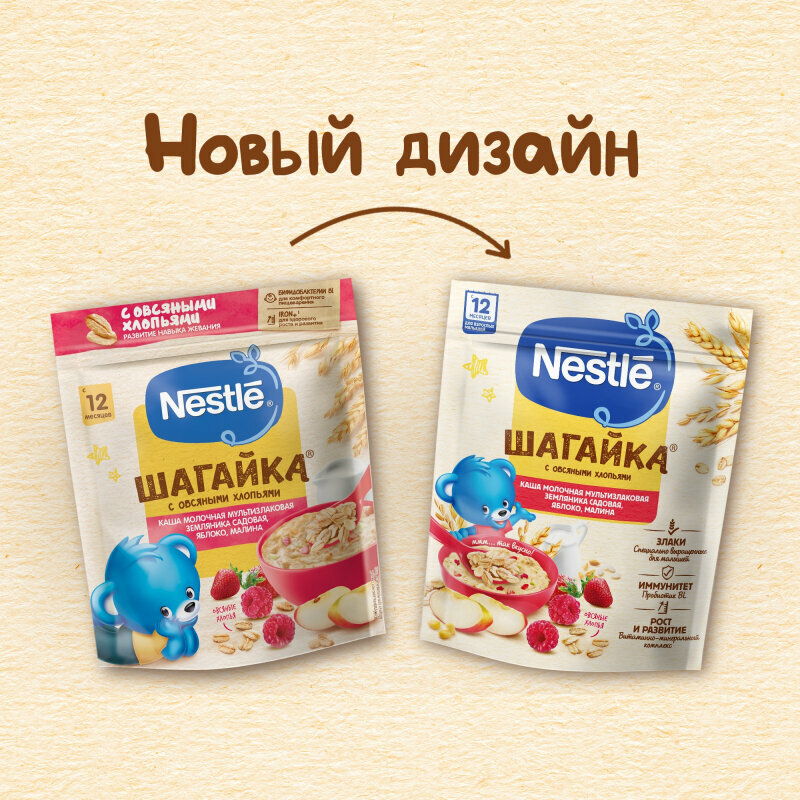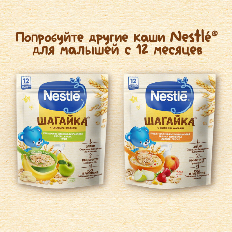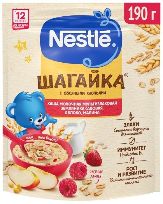 Каша Nestle Шагайка Молочная мультизлаковая Земляника-Яблоко-Малина с 12 месяцев 190г