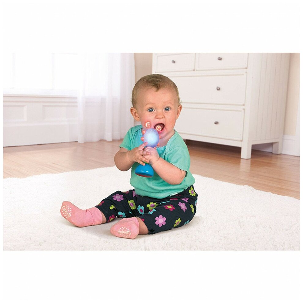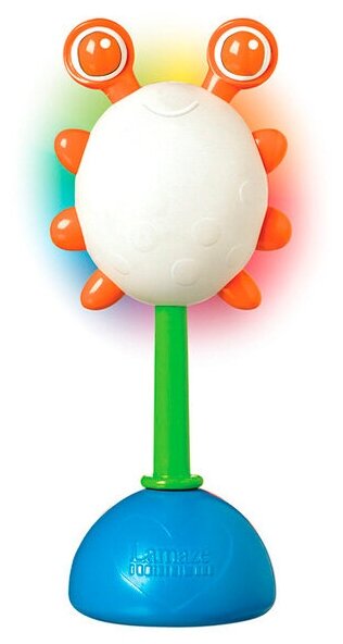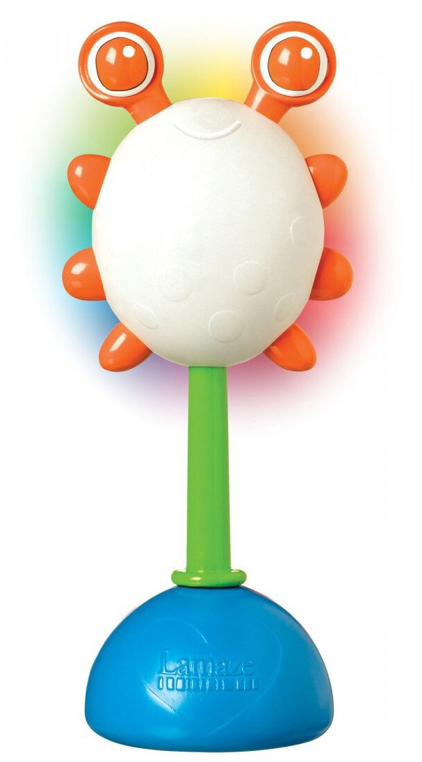 Погремушка "Жучок" Lamaze (Ламази)Яркая развивающая игрушка от производителя детских товаров Lamaze станет одной из самых первых забав малыша. Она выполнена в виде забавного жучка на подставке, изготовленного из пластика высокой очистки. Если потрясти погремушку, то она издаст мелодичное потрескивание и поменяет свой цвет. Глазки жучка выполнят функцию прорезывателя. Их можно грызть, развивая жевательный рефлекс или успокаивая беспокоящие десенки.