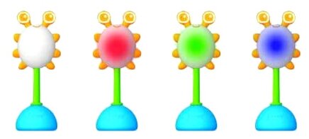 Эта погремушка предназначена для малышей с рождения и до двух лет. Малыша очень заинтересуют мигающие разноцветные огоньки в центре белого овала. Игрушку очень удобно держать в маленькой ручке. Глаза с ножки жучка достаточно мягкие, поэтому малыш может брать их в рот.