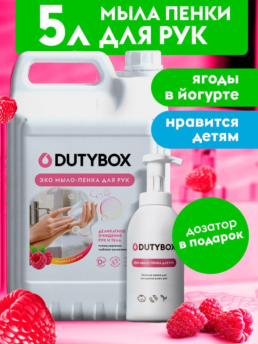 На сегодняшний день товар «Мыло-пенка для рук 5л с ароматом Малины в йогурте +дозатор в подарок! Dutybox (db-5146)» можно купить с кешбеком в 1 магазине: Яндекс.Маркет