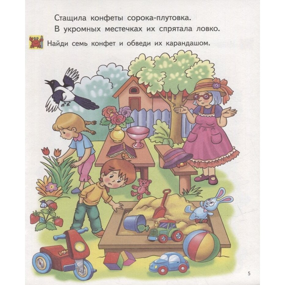 Интересные и разнообразные задания серии "Соображай-ка!" направлены на развитие у детей дошкольного возраста концентрации внимания, логического мышления, наблюдательности и усидчивости. Ребенка ждут увлекательные лабиринты и задания "найди на картинке". Все тетради серии рассчитаны на определенный возраст, и в каждой детям предлагаются задания разной степени сложности. Выполняя задания, ребенок не только получит полезные навыки, но и научится получать удовольствие от занятий. Серия предназначена для занятий взрослых с детьми. Она может быть использована в дошкольных образовательных учреждениях.