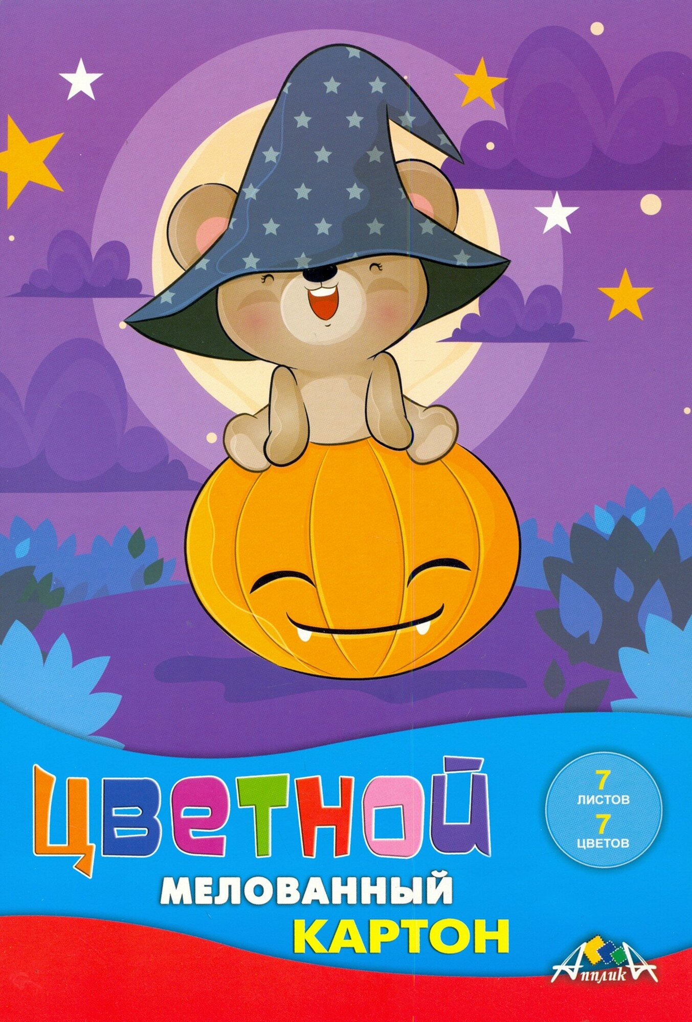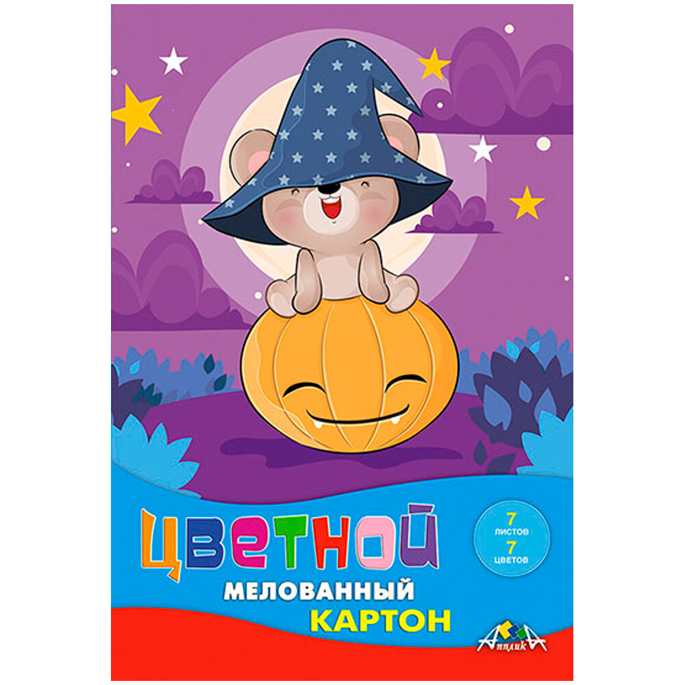 Картон цветной мелованный Хэллоуин 7 листов 7 цветов АппликА