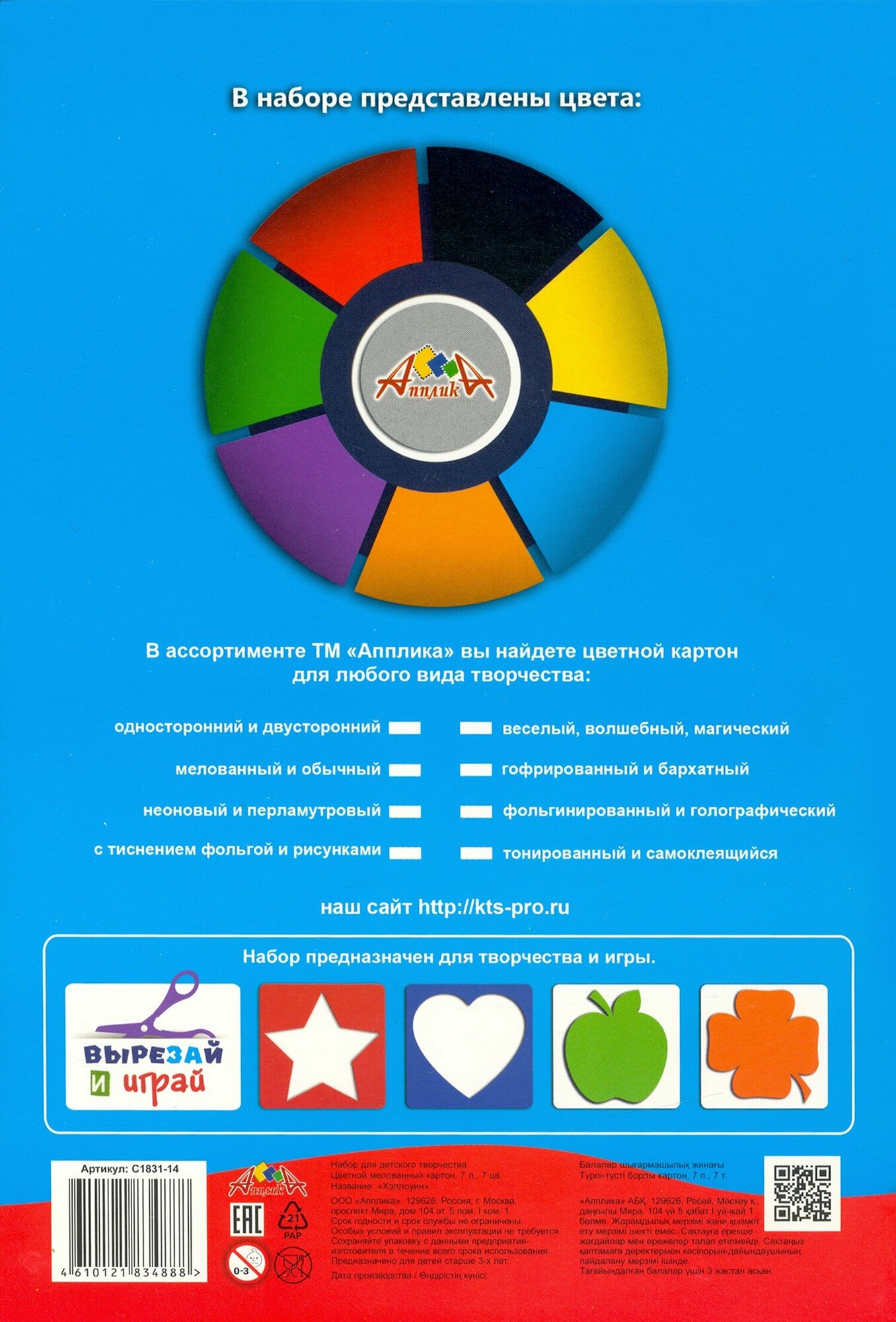 Цветной мелованный картон 7 листов, 7 цветов ТМ Апплика.