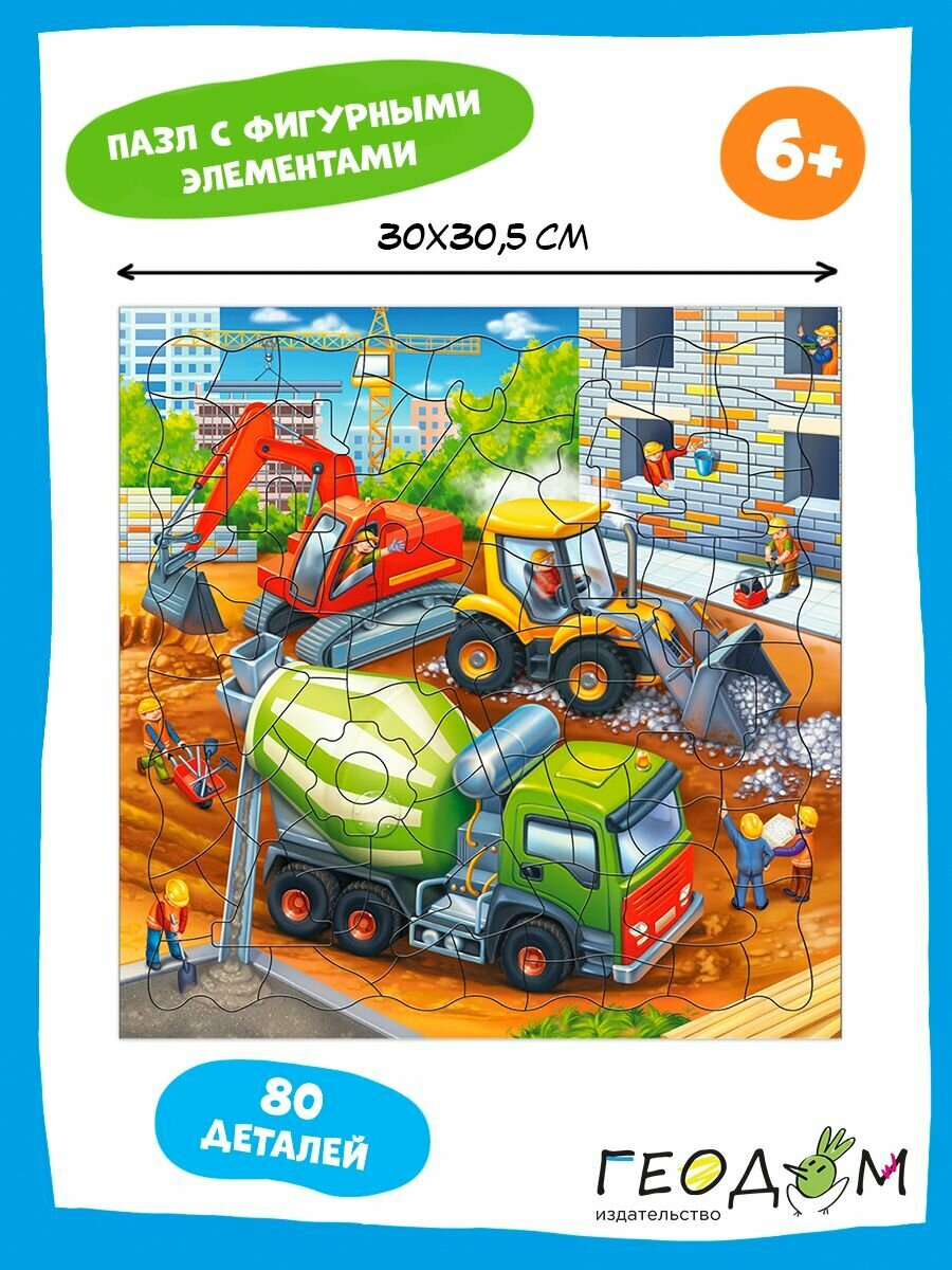 Пазл фигурный Стройка 80 деталей Геодом