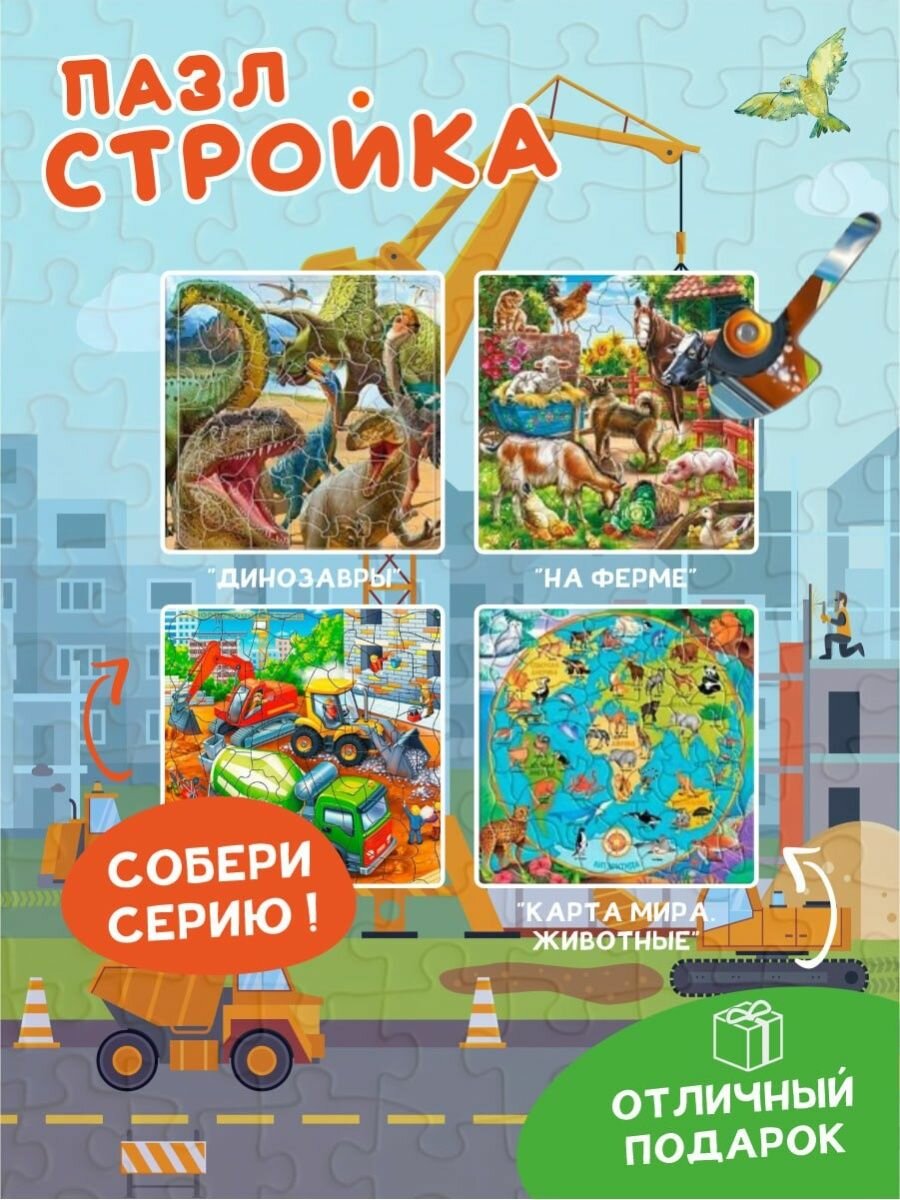 Сервис сравнения цен СкидкаГИД предлагает сравнить цены на товар «Пазл фигурный Стройка 80 деталей Геодом»
