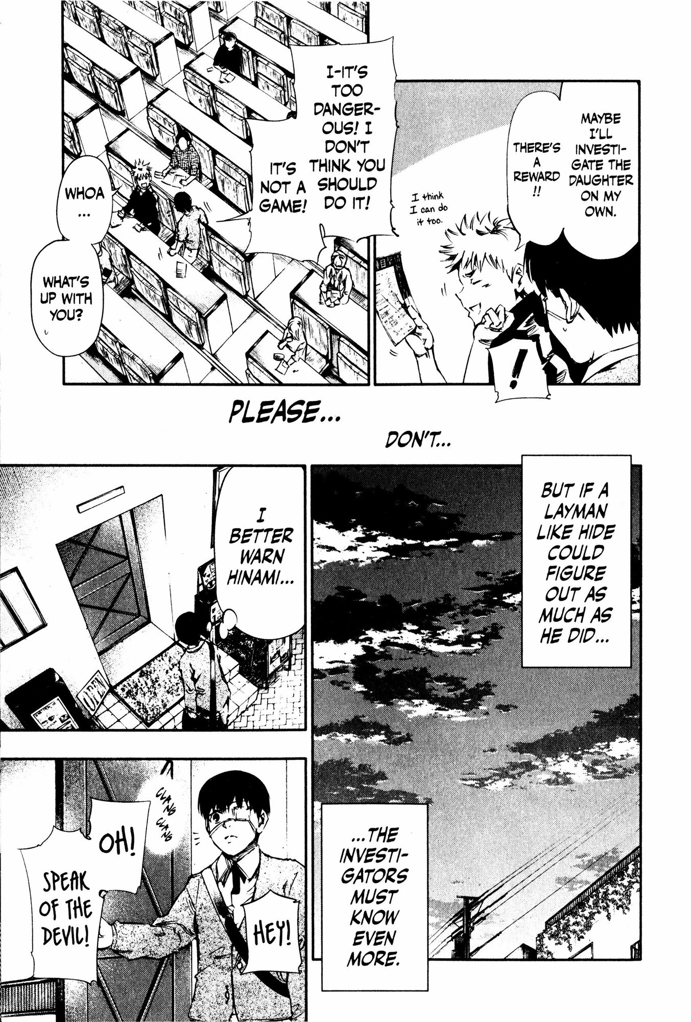 Ghouls live among us, the same as normal people in every way - except their craving for human flesh. Ken Kaneki is an ordinary college student until a violent encounter turns him into the first half-human half-ghoul hybrid. Trapped between two worlds, he must survive Ghoul turf wars, learn more about Ghoul society and master his new powers. Kaneki meets Shu Tsukiyama, known as The Gourmet for his interesting and sadistic tastes. And Kaneki learns more about what happened to Rize and what it means to be a One-Eyed Ghoul.
