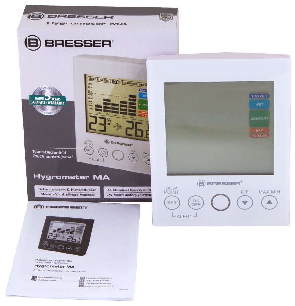 Гигрометр Bresser Mould Alert вовремя предупредит вас об ухудшении микроклимата дома. Он измеряет влажность воздуха и температуру и сообщает о неблагоприятных изменениях, которые могут сказаться на самочувствии домочадцев или привести к образованию плесени.