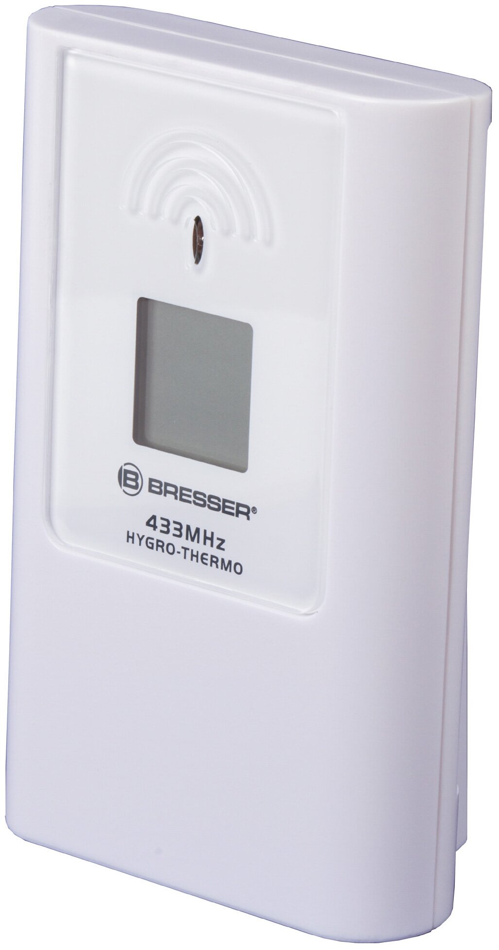 Перед вами внешний датчик для метеостанций Bresser TemeoTrend WF. Он измеряет температуру и влажность воздуха и подключается к основному модулю по радиоканалу. Датчик совместим только с обновленными моделями метеостанций и не может работать со старыми модификациями. Датчик можно установить внутри или снаружи помещения, закрепить на стене или поставить на полку. Провода для питания и передачи данных не требуются. Дальность беспроводной связи составляет 30 метров. Измерения выводятся не только на основной модуль, но и на встроенный ЖК-экран датчика.