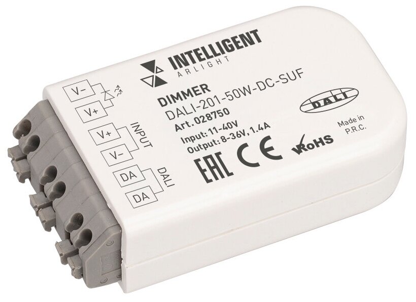 Димируемый блок питания DALI-201-50W-DC-SUF 11-50V DC 1400mА Arlight 028750 (размер: 60x35x16)