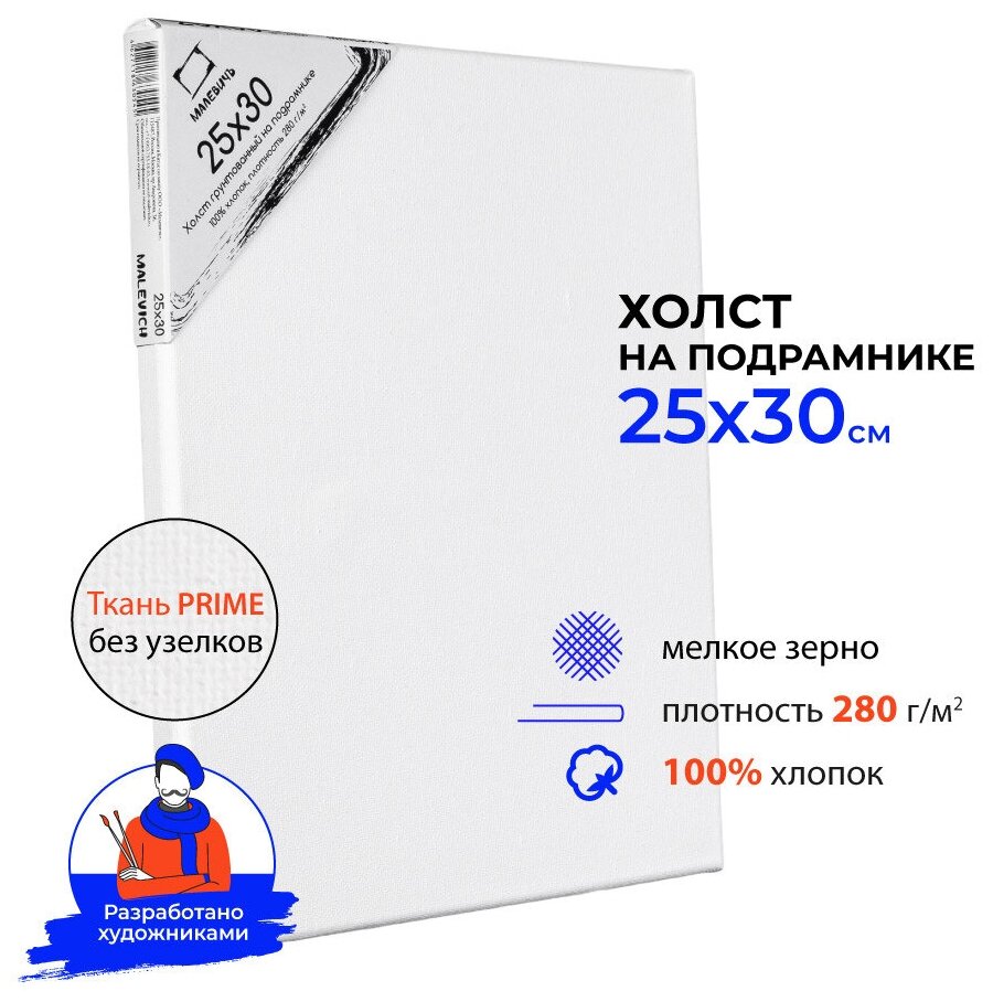 Холст на подрамнике грунтованный Малевичъ 25x30 см 280 г хлопок (МЛ-232530)