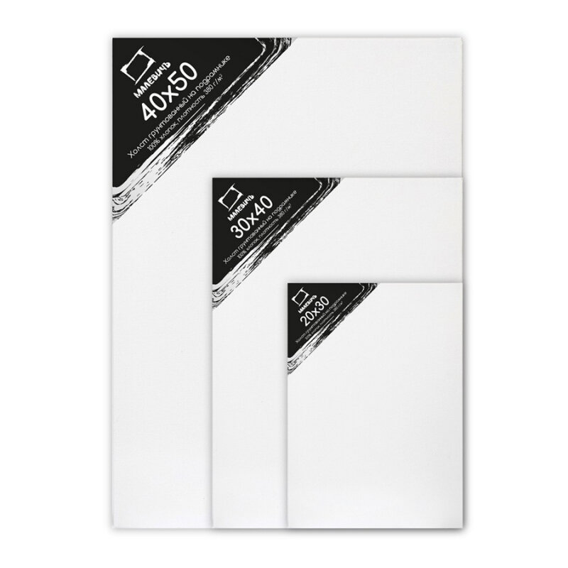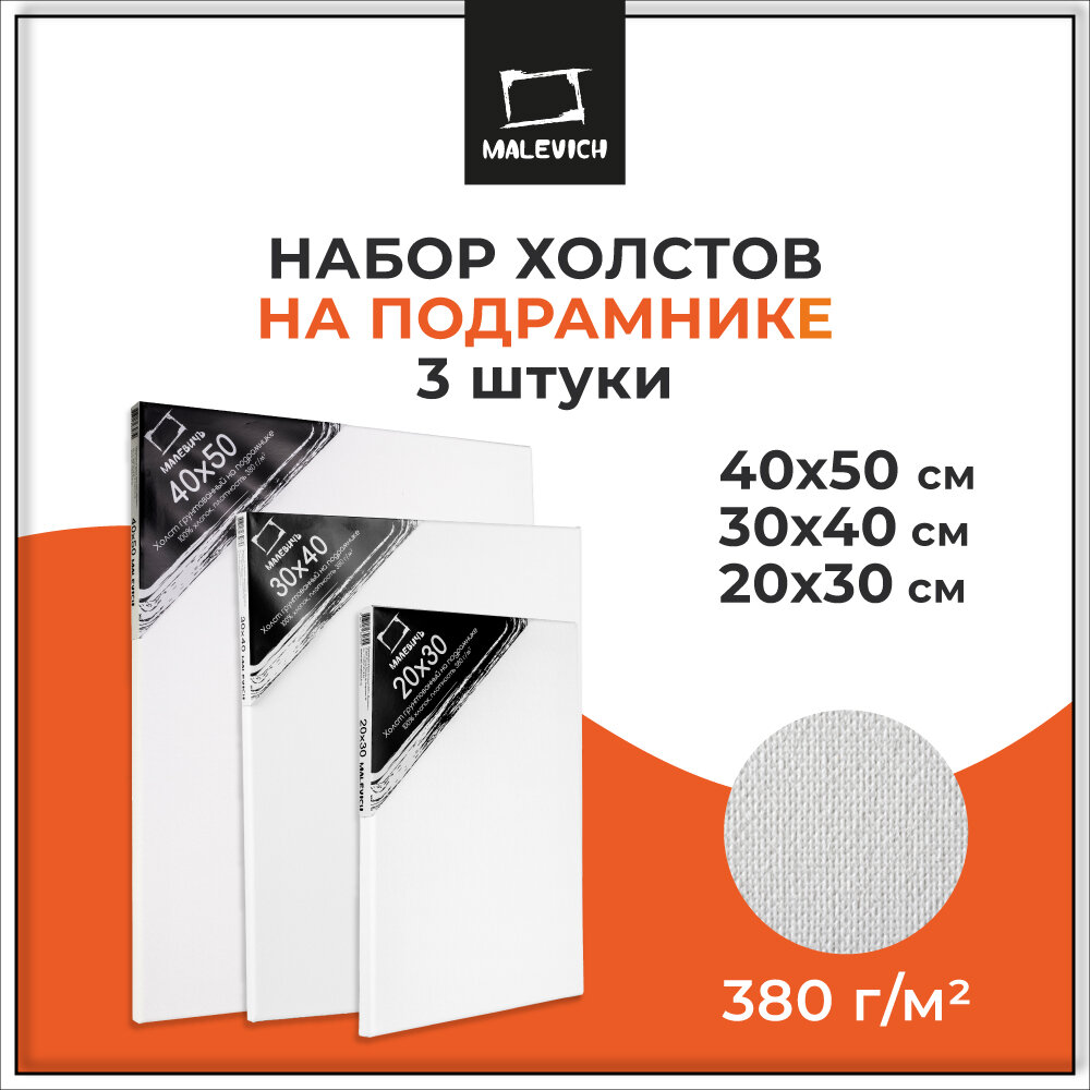 Набор холстов на подрамнике 3 шт Малевичъ 20х30 30х40 40x50 см 100% хлопок 380 г (МЛ-212033)