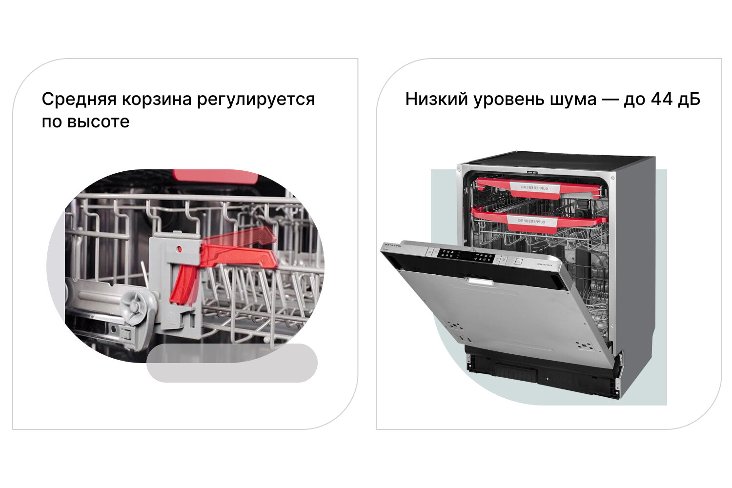 Благодаря наличию функции шумоподавления, негативные эмоции снижаются до минимума, что позволит получать только позитив от использования посудомоечной машины. Три корзиныПосудомоечная машина оснащена тремя вместительными корзинами и держателем для бокалов.