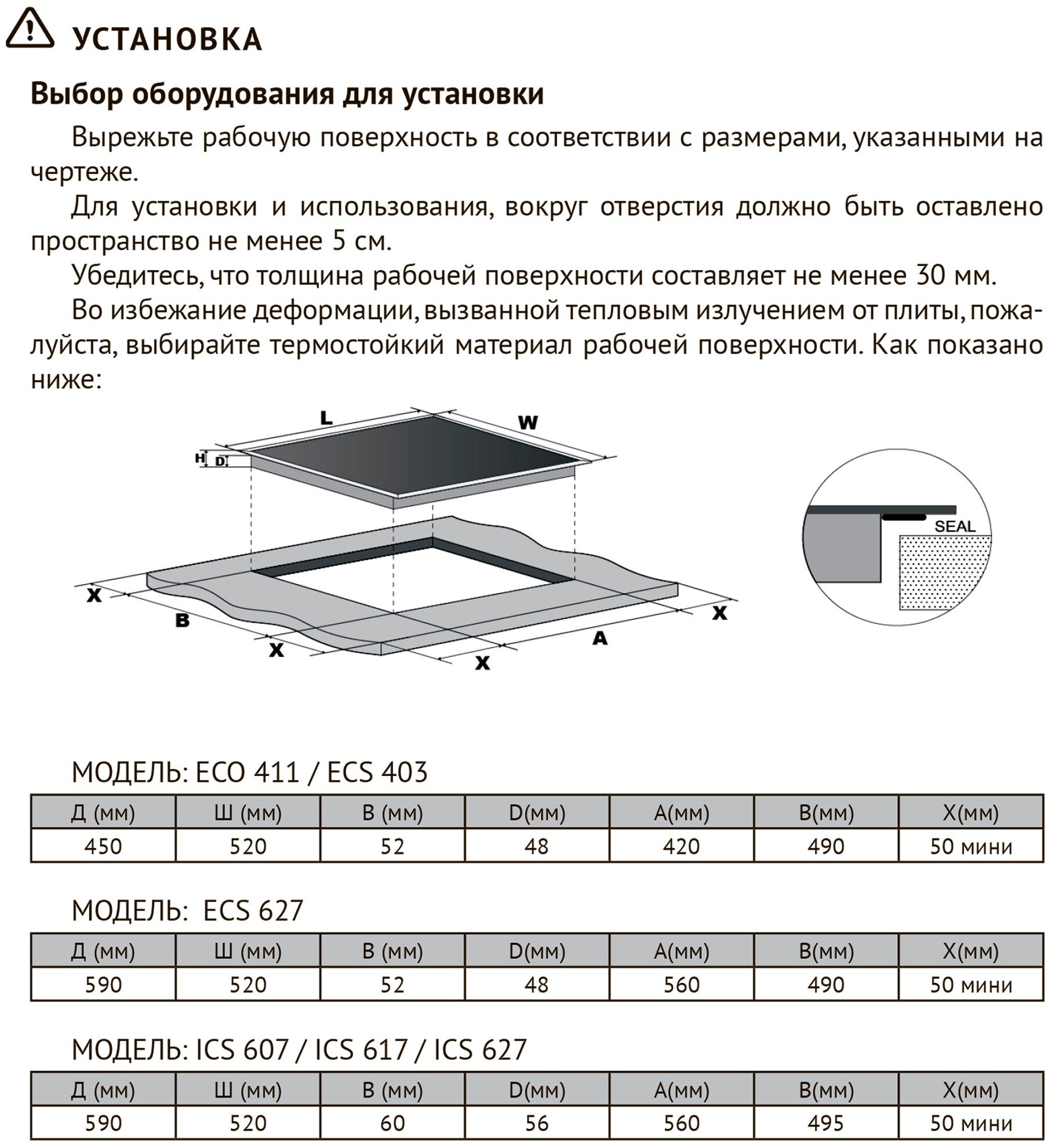 | Размер ниши для встраивания | (ШхГ), мм:560×490 |