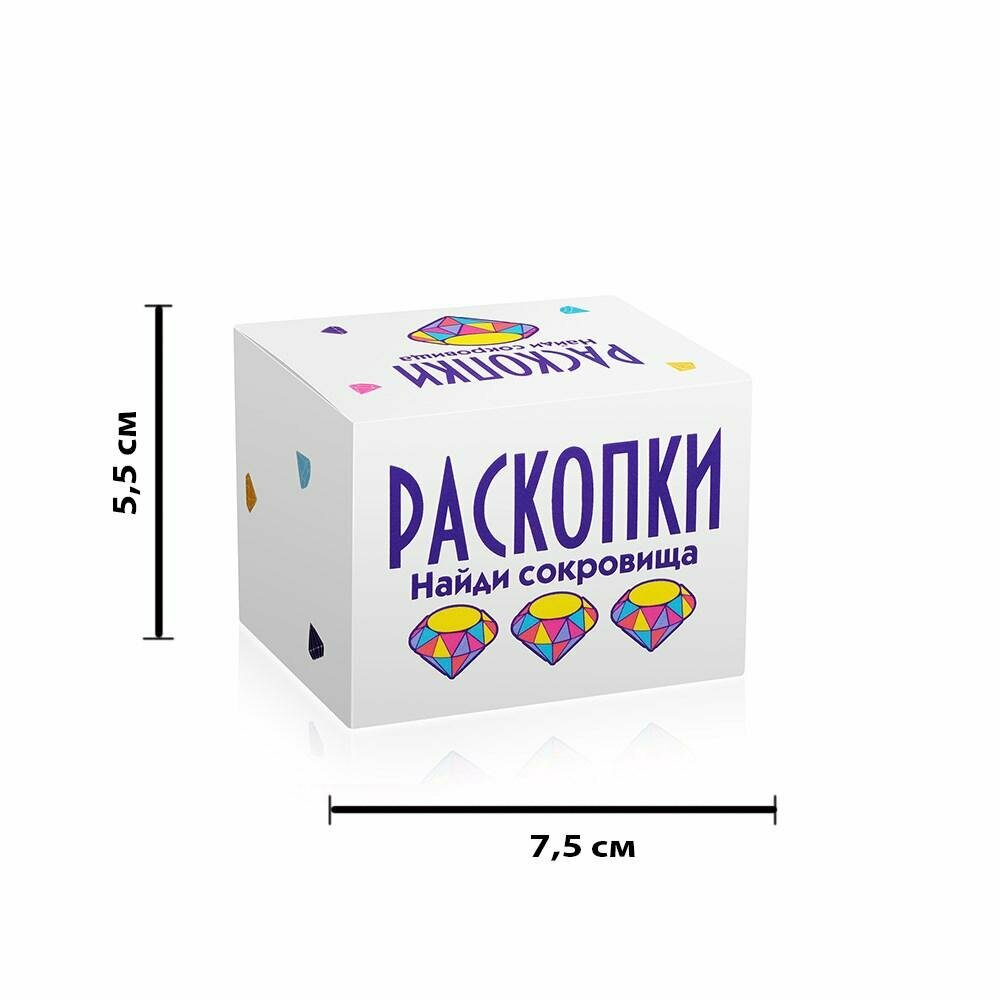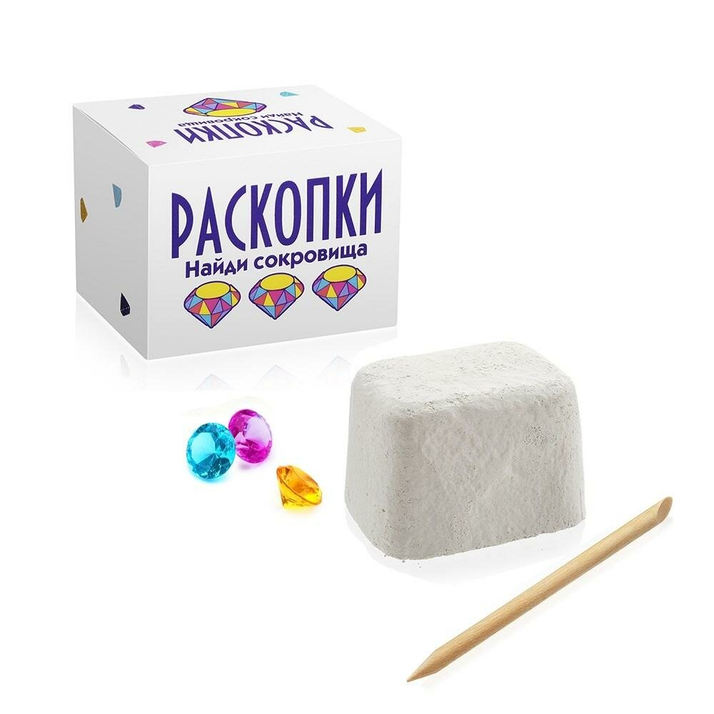 В наборе: брусок с артефактами внутри (россыпь находок из пластика в форме бриллиантов), деревянный стек для дробления. Цвета находок в ассортименте.
