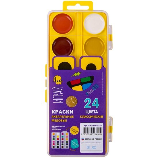 Акварель медовая Играй 24 цвета без кисти ЛЕО