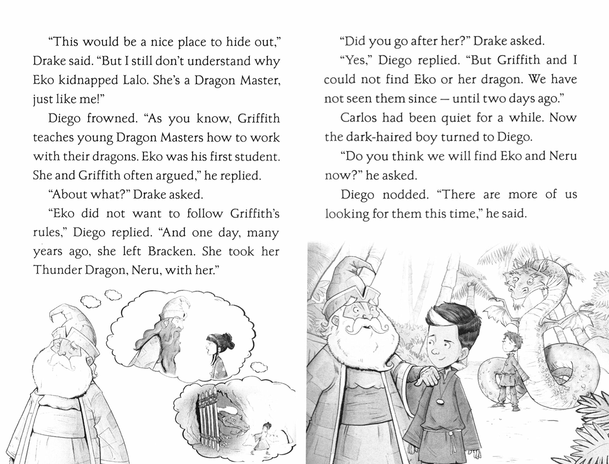 Pick a book. Grow a Reader! This series is part of Scholastic's early chapter book line, Branches, aimed at newly independent readers. With easy-to-read text, high-interest content, fast-paced plots, and illustrations on every page, these books will boost reading confidence and stamina. Branches books help readers grow! In book #8, Drake and the rest of the Dragon Masters are searching for Lalo the baby Lightning Dragon! Lalo was kidnapped by Eko -- Griffith's first Dragon Master. Eko ran away with her Thunder Dragon, Neru, years ago. Now she's back and she wants to kidnap every dragon in the kingdom! Can Drake and the other Dragon Masters rescue Lalo and stop Eko before it's too late?