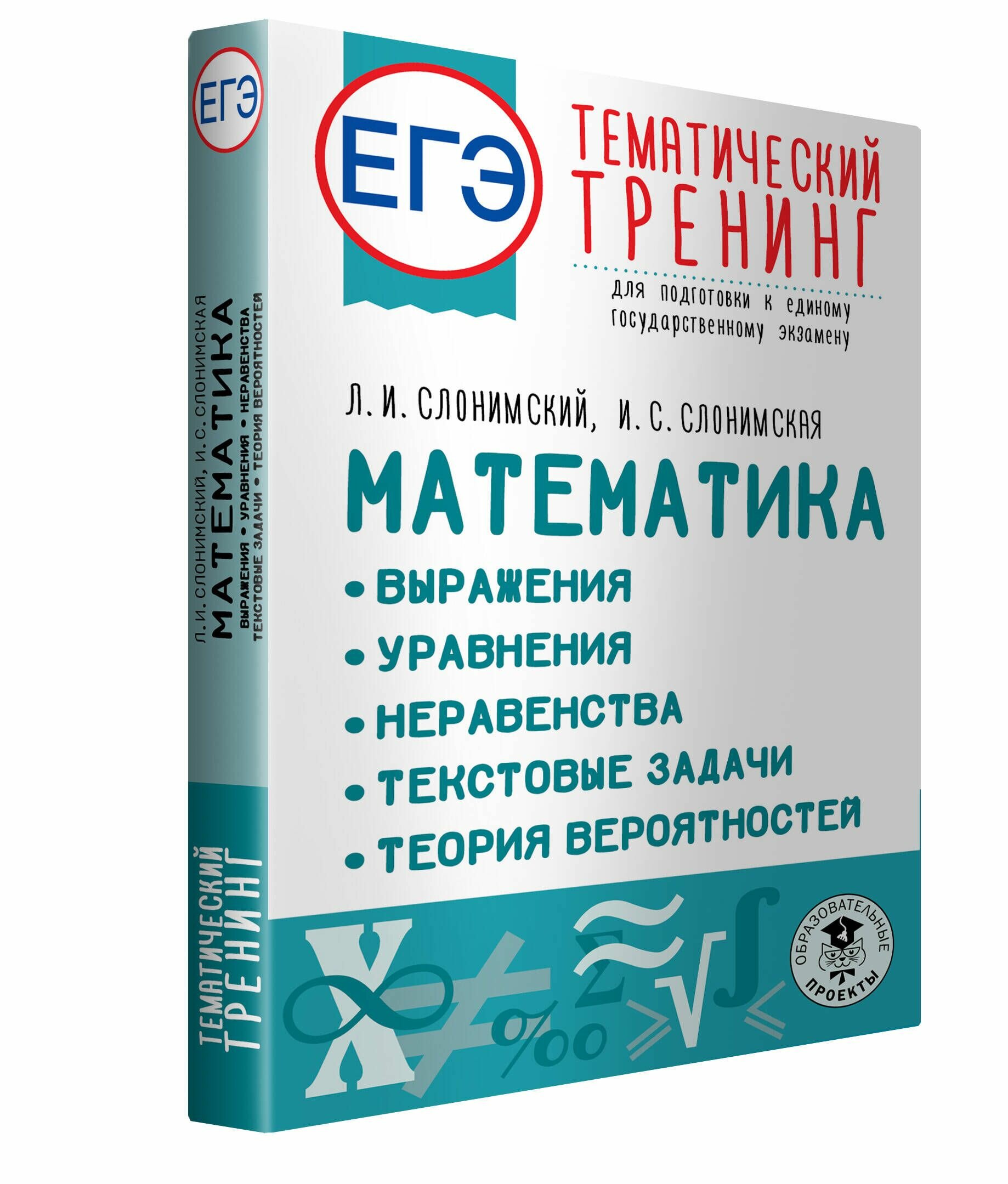 ЕГЭ. Математика. Выражения. Уравнения. Неравенства. Текстовые задачи. Теория вероятностей. Тематический тренинг для подготовки к единому государственному экзамену (Слонимская Ирина Семеновна, Слонимский Лев Иосифович); Образовательные проекты, 2022