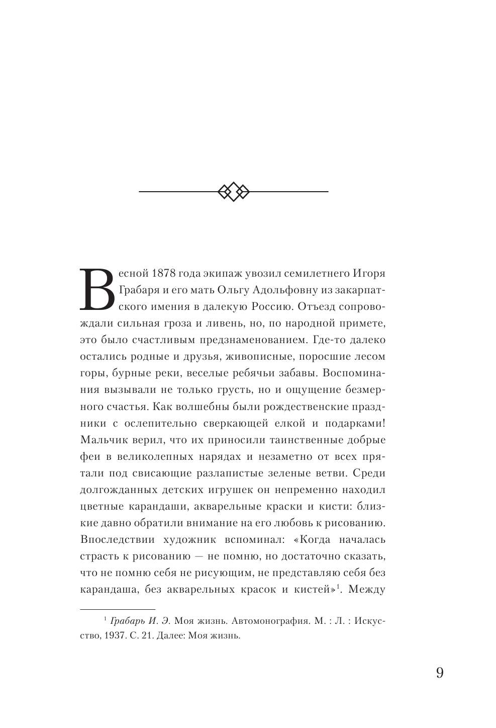 Удивительная история жизни и творчества одной из самых ярких фигур русского и советского искусства, Игоря Эммануиловича Грабаря, воссоздана на страницах этой книги. Трогательные истории из жизни оттеняют поразительные творческие достижения выдающегося живописца, историка искусств, реставратора, музейного деятеля, преподавателя и неутомимого исследователя.