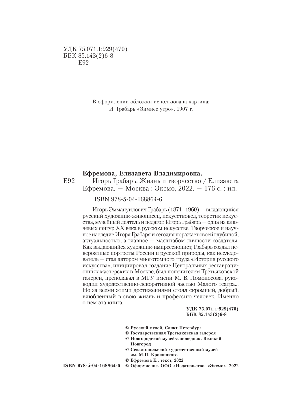 Игорь Грабарь. Жизнь и творчество (Ефремова Елизавета Владимировна); ООО "Издательство "Эксмо", 2022