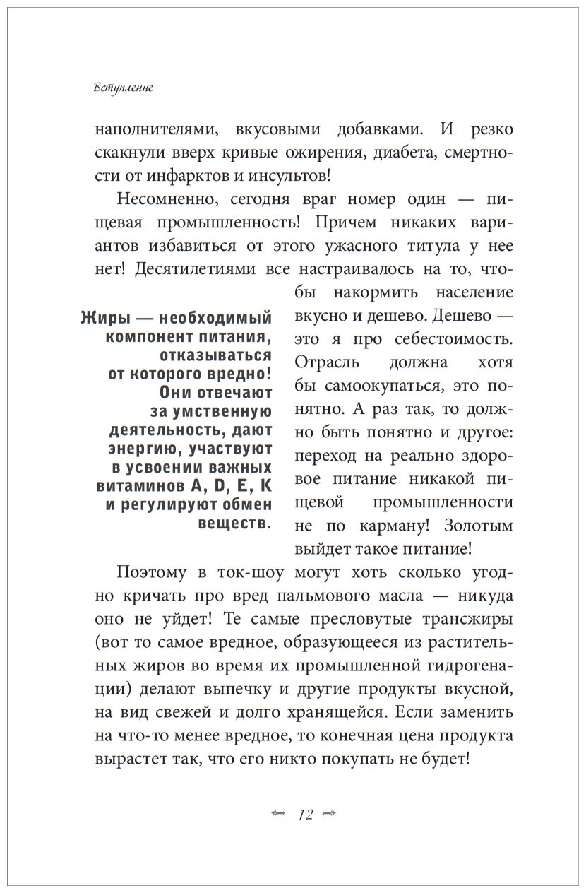 Естественно, прежде чем купить подарок, я решила сама ее пролистать и посмотреть содержание. И так увлеклась, что прочитала первые три главы за полчаса! Интересно и познавательно. А главное — очень полезно. Ведь мы едим, часто даже не задумываясь, ЧТО мы едим и КАК это отразится на нашем здоровье. Уверена, каждый найдет для себя нужную информацию по пищевым привычкам!