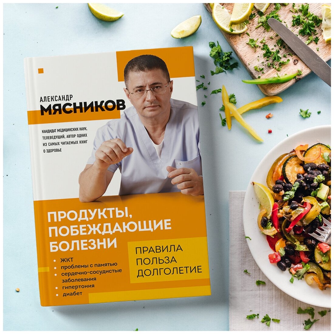 Продукты побеждающие болезни. Как одержать победу над заболеваниями с помощью еды. Правила польза долголетие. (Мясников Александр Леонидович); ООО "Издательство "Эксмо", 2022
