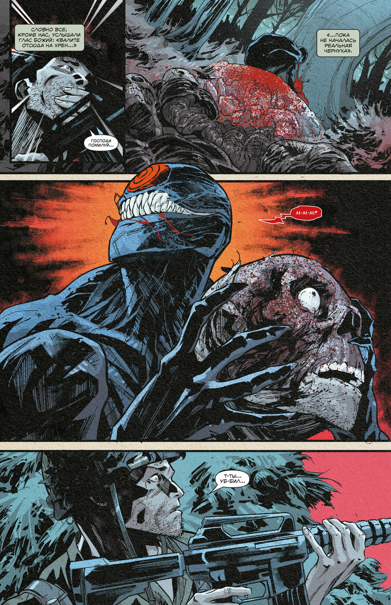 Отправляйтесь вслед за знаменитым симбиотом на поля Вьетнамской войны, в таинственный подземный город, в открытый космос и даже на другие планеты! Узрите рождение и множество перерождений Клетуса Кэссиди, кровавые ритуалы культа Карнажа, а также начало беспощадной охоты во славу бога тьмы Нулла!