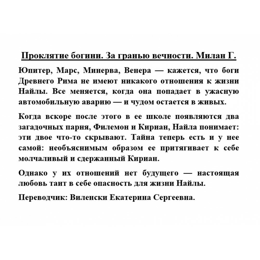 Юпитер, Марс, Минерва, Венера - кажется, что боги Древнего Рима не имеют никакого отношения к жизни Найлы. Все меняется, когда она попадает в ужасную автомобильную аварию - и чудом остается в живых.