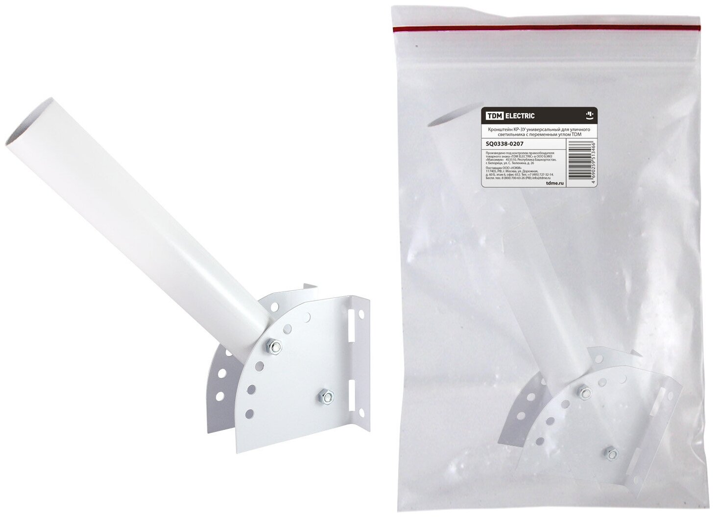 Кронштейн КР-3У универсальный для уличного светильника с переменным углом TDM НазначениеДля крепления уличных консольных светильников РКУ, ЖКУ, СКУ, ЛКУ на стену и опору.Кронштейн крепится на стену с помощью анкерных болтов или на опору металлической бандажной лентой.МатериалыСтальной лист толщиной 1,5 мм.Труба стальная диаметром 48 мм, толщина стенки 1,5 мм, длина 350 мм.Оцинкованные винты и гайки.ПреимуществаВозможна установка на опоры освещения при помощи бандажной ленты.Предусмотрена возможность регулировки угла наклона светильников.Детали кронштейна окрашены прочной белой порошковой краской.Кронштейн выдерживает нагрузку до 10 кг.Каждый кронштейн упакован в полиэтиленовый пленку и снабжен индивидуальным стикером с необходимой информацией и штрихкодом EAN-13.