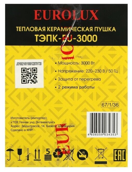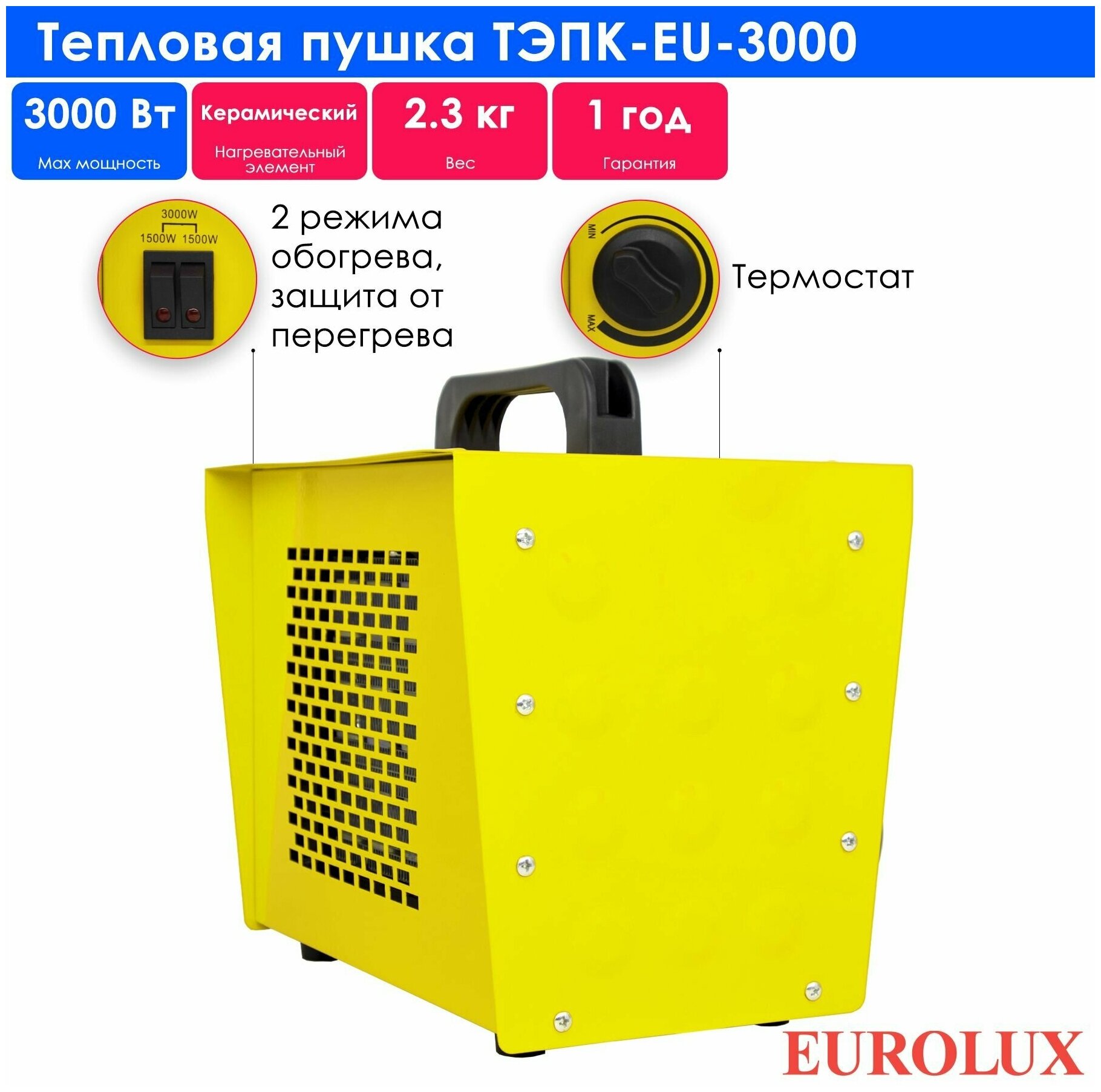 Тепловая пушка электрическая EUROLUX ТЭПК-EU-3000
