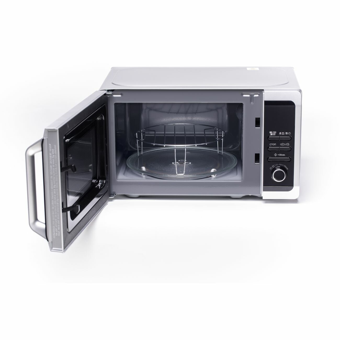 | Комплект поставки | Микроволновая печь, решетка для гриля, стеклянный поддон, роликовая подставка, документация |
