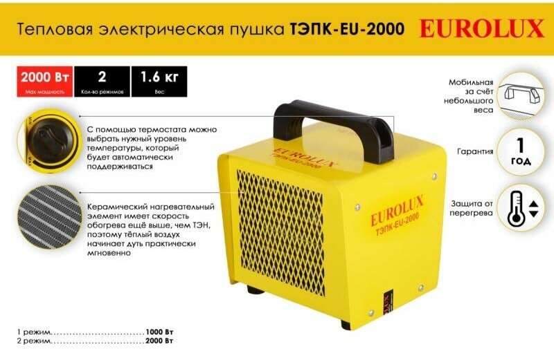 Тепловая пушка электрическая EUROLUX ТЭПК-EU-2000