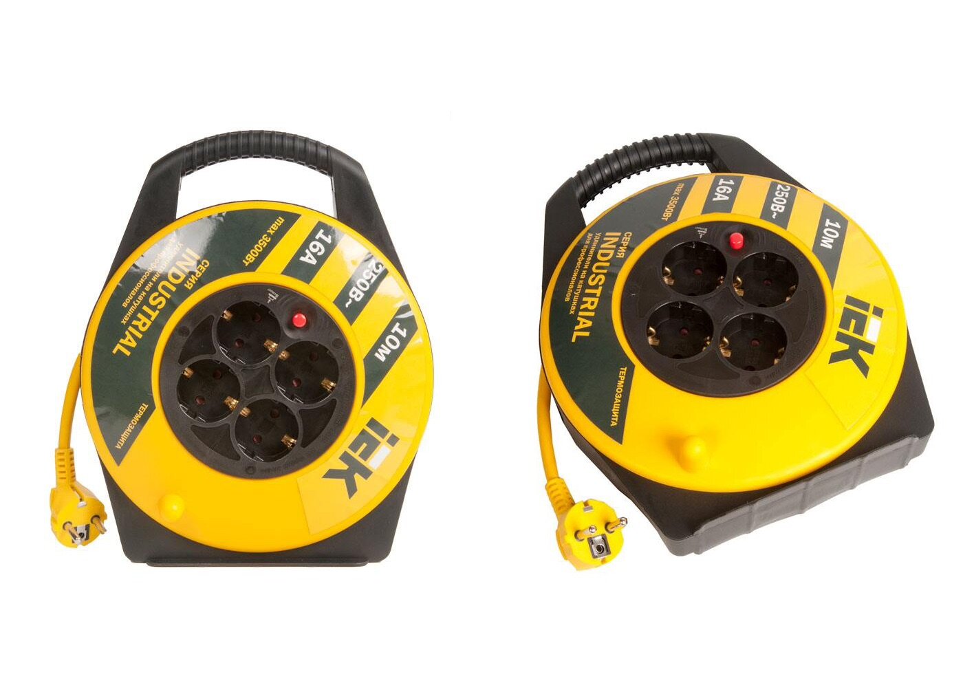 | Прочие особенности и свойства | Тепловое реле защищает от превышения максимально допустимой подключаемой нагрузки., Изолирующая прорезиненная ручка обеспечивает безопасную и комфортную эксплуатацию., Рама с замкнутым контуром изготовлена из стальной трубы., Во всех удлинителях применена литая вилка в цвет кабеля., Желтый кабель отлично виден в пыли в условиях строительной площадки., Вся необходимая техническая информация по эксплуатации удлинителей на катушке нанесена на лицевую сторону корпуса и на стикер. |