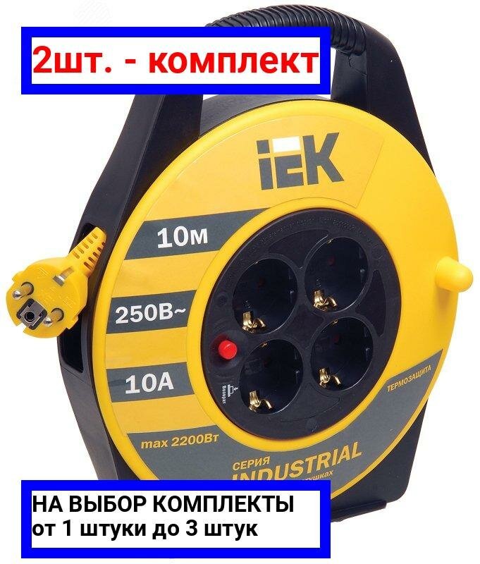 Удлинитель силовой IEK УК10 4 розетки c заземл. на катушке ПВС 3х15 10 м INDUSTRIAL