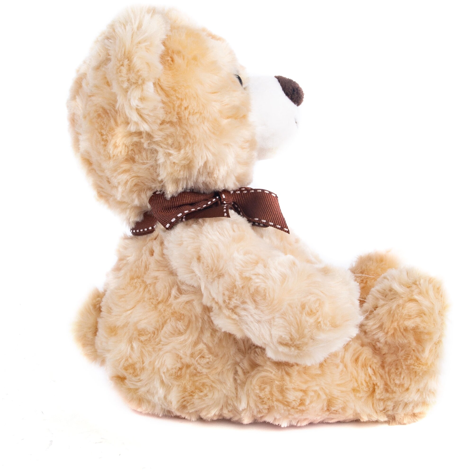 Кудрявый плюшевый медвежонок очарует любого ребенка. Он нежного бежевого цвета и его так приятно держать в руках. У мишки черные глазки и бантик на шее. Лапки и ушки отделаны белым коротковорсным мехом. Изготовлена из качественных сертифицированных материалов.