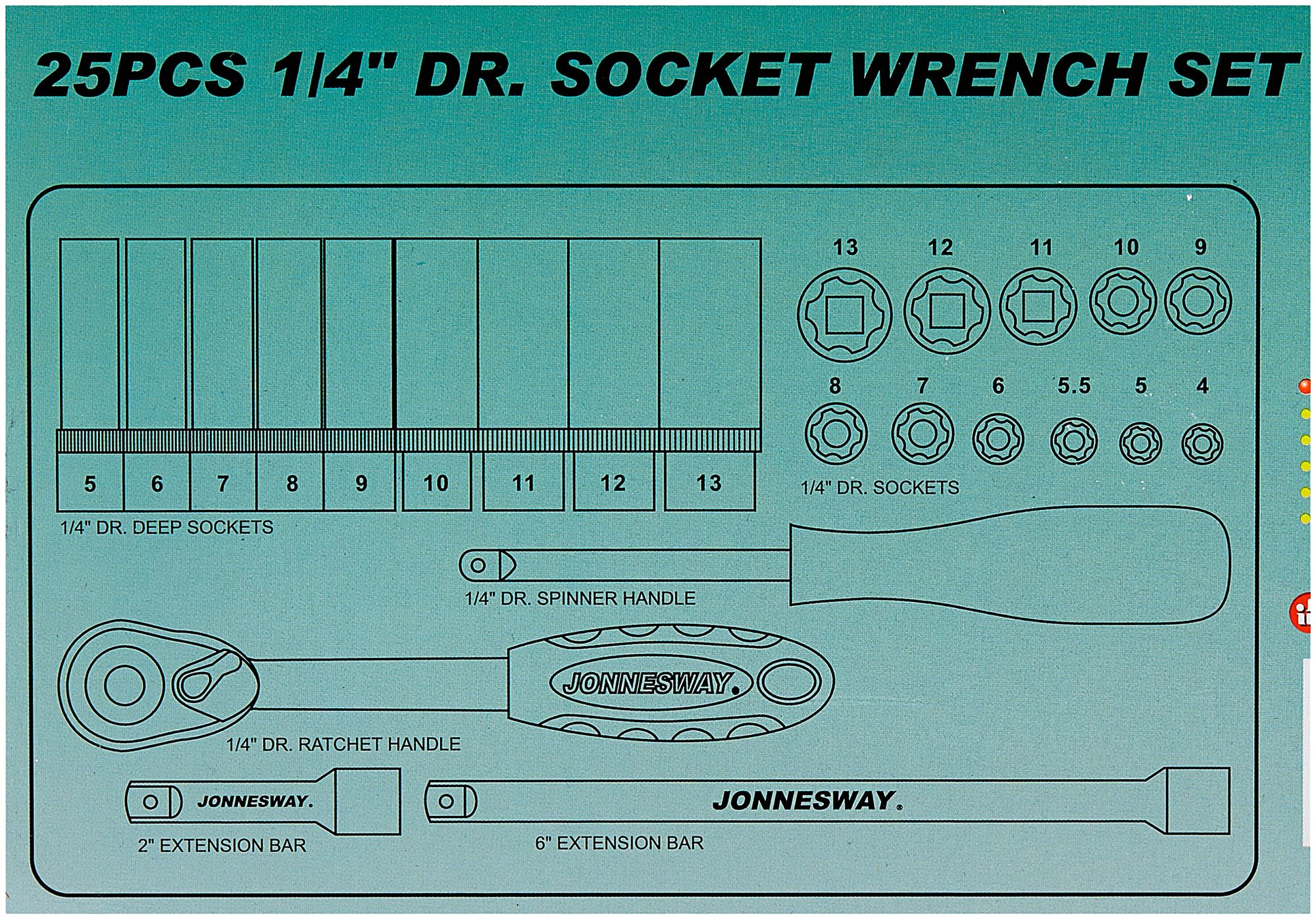 Набор торцевых головок Jonnesway 1/4 25 предметов (S04H2125S)