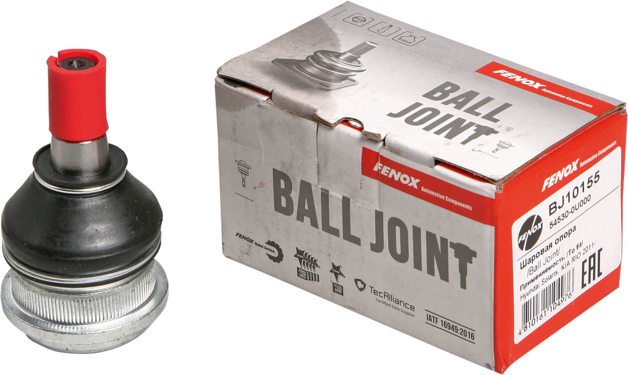 Шаровая опора FENOX BJ10155 представляет собой недорогой белорусский аналог для вашего автомобиля. Высокие показатели надежности и долговечности в BJ10155 достигаются благодаря использованию прогрессивных конструкций и передовых технологий. Особенностью шаровой опоры FENOX BJ10155 является конструкция вкладыша, которая имеет уникальные каналы для поступления смазки в зону трения сферы шарового пальца. Запатентованная конфигурация вкладыша полностью исключает его смещение в корпусе, а сверхпрочный монолитный корпус с увеличенной толщиной стенок, изготовленный по уникальной технологии SolidCast, полностью исключает выдавливание и вырыв шарового пальца. BJ10155 отлично зарекомендовали себя на всем восточноевропейском рынке запчастей в силу своей привлекательной цены.Главным признаком неисправности шаровой опоры является:1)Посторонний шум из подвески при движении по неровной дороге на скорости до 30 км. в час. Причиной является то, что из-за повышенного механического износа стучит палец.2)При движении на скорости от 50 км. в час колесо начинает раскачиваться из стороны в сторону. Причиной этому является люфт пальца шаровой опоры. 3)Скрип при повороте руля. Причиной является нехватка смазки либо грязь, попавшая через порванный пыльник шаровой опоры.При появлении данных симптомов рекомендуется незамедлительно обратиться на СТО. Несвоевременная замена шаровой опоры может привести к серьезным финансовым затратам.