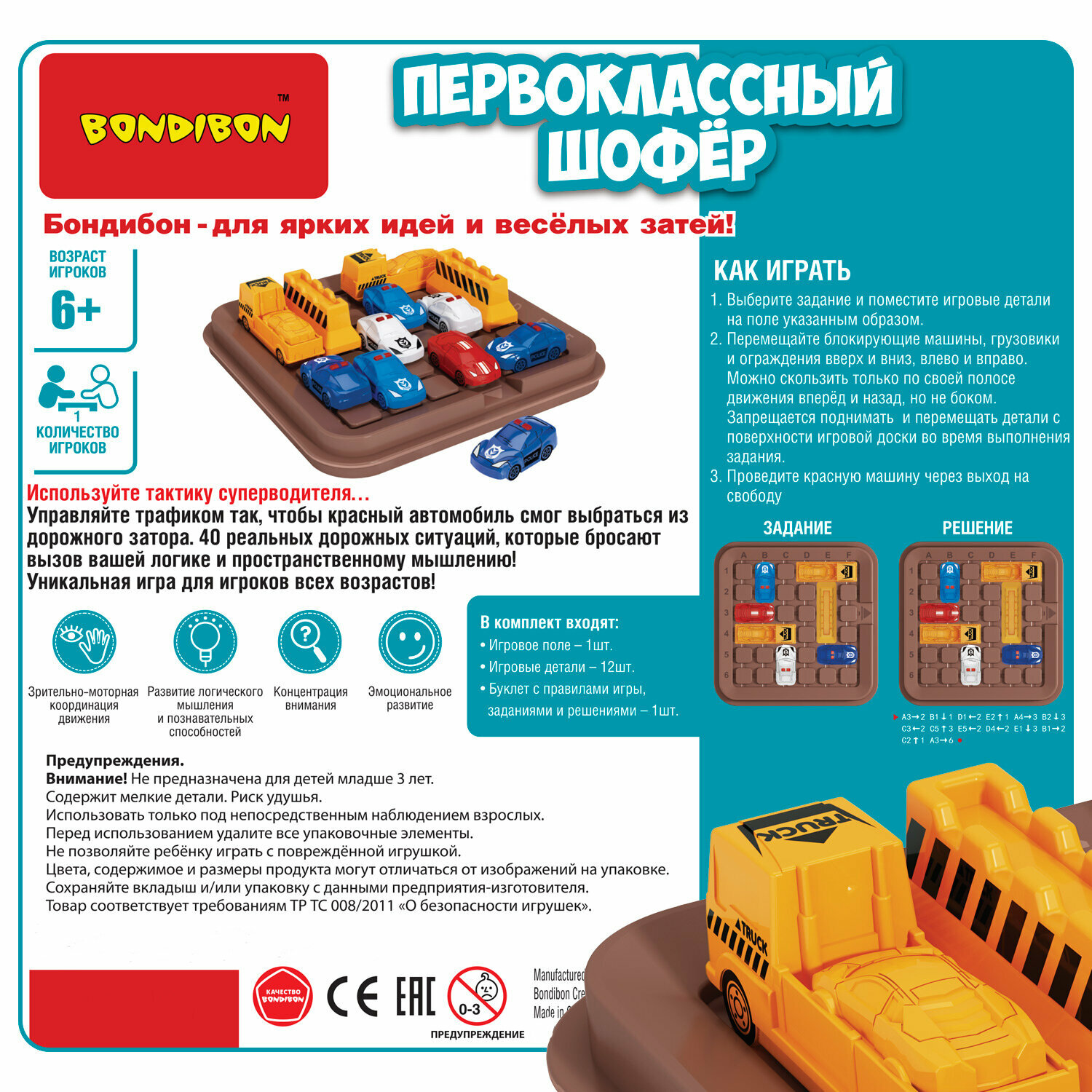 - Настольная логическая игра-головоломка "ПЕРВОКЛАССНЫЙ ШОФЁР" БондиЛогика Bondibon